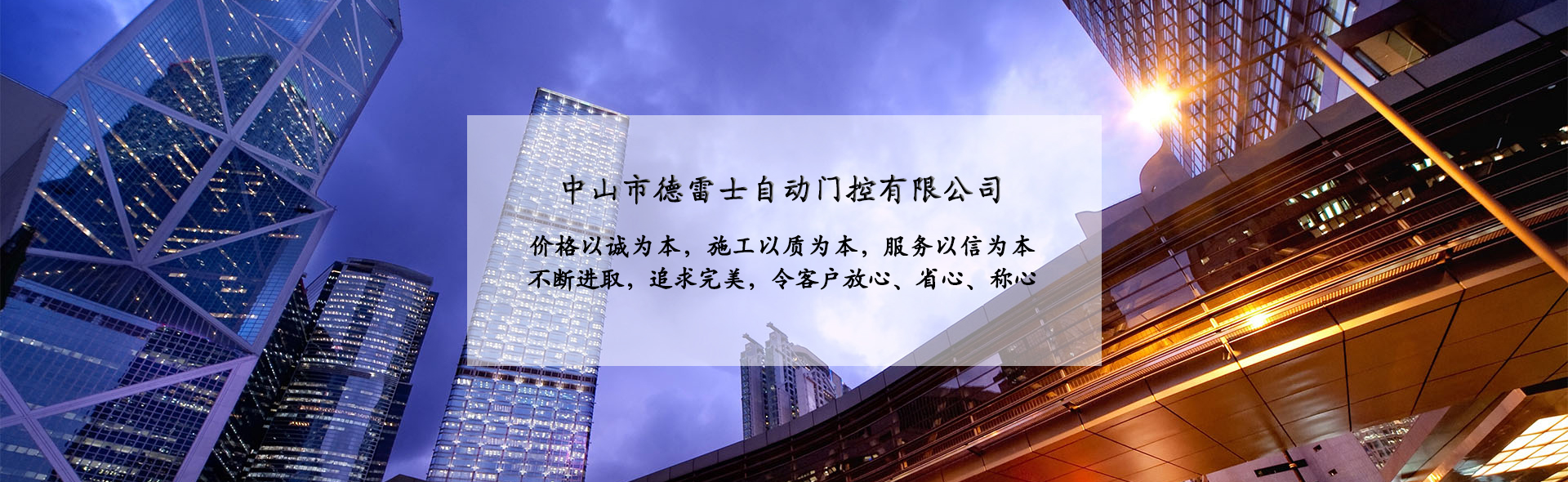 中山市德雷士自動門控有限公司代理中山松下自動門、中山松下感應(yīng)門、及其旗下品牌松下(Panasonic)自動門、旋轉(zhuǎn)門、型材門、松下門禁系統(tǒng)、地彈簧、閉門器等系列產(chǎn)品。 松下Panasonic一直致力于憑借不斷創(chuàng)新的技術(shù)營造為各個區(qū)域的用戶做出最佳解決方案,在自身領(lǐng)域處于領(lǐng)先地位;松下自動門控系統(tǒng)廣泛應(yīng)用于寫字樓、機(jī)關(guān)單位、大型企業(yè)、學(xué)校、醫(yī)院、智能小區(qū)等領(lǐng)域。在用戶心中有良好的口碑及信譽(yù)度。 松下(Panasonic)自動門控系統(tǒng)包含:自動感應(yīng)門、旋轉(zhuǎn)門、90度平開門、圓弧型門、重疊門、緊急逃生門、醫(yī)用門、氣密門、鋁合金型材門、松下門禁系統(tǒng)、家庭智能鎖、地彈簧、閉門器等系列產(chǎn)品。 德雷士自動門控有限公司從事智能門控十余載,精英匯聚;公司具有完善的管理體系,對每位客戶都進(jìn)行檔案管理,跟蹤服務(wù),定期回訪,終生維修。提供急修12小時解決,一般維修48小時解決的服務(wù),完全能解決您的后顧之憂。 公司的質(zhì)量方針 科學(xué)管理確保的工程質(zhì)量 真誠服務(wù)贏得客戶信譽(yù) 持續(xù)創(chuàng)新打造企業(yè) 公司的服務(wù)宗旨 價格以誠為本,施工以質(zhì)為本,服務(wù)以信為本。 實(shí)實(shí)在在做人,老老實(shí)實(shí)做事,以我們的辛苦換來客戶滿意的微笑,這就是我們的追求! 公司的目標(biāo) ...
